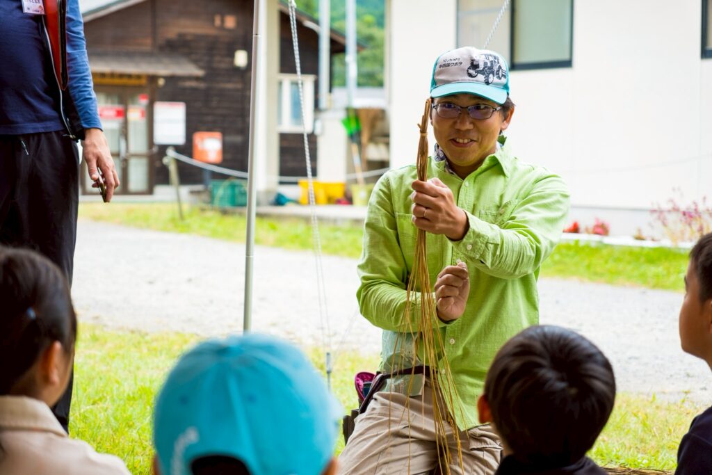 2025年10月19日、前津江町大野本村公民館にて、福岡市内の小学生を対象に、しめ縄作り体験を実施しました。